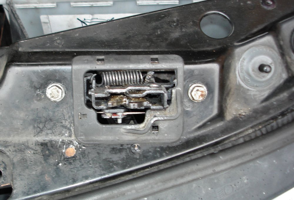 Les loquets sont bien protégés des éléments en étant situés derrière les phares et sous la traverse supérieure. Les miens ont montré peu de signes de rouille, même après 25 ans.