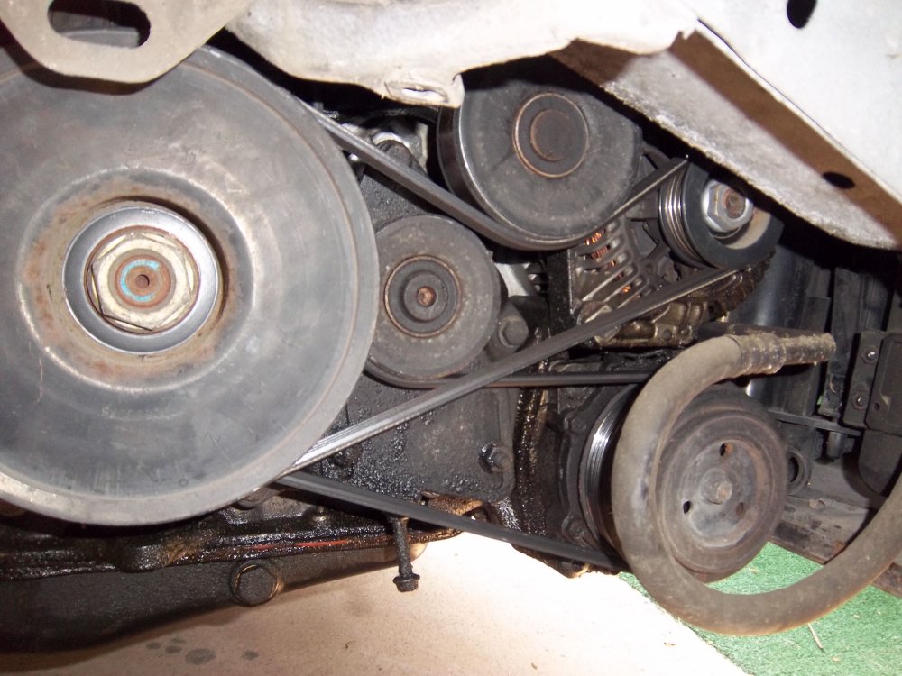 En 3 heures (dont 1heure pour aller chercher une empreinte mâle T50), courroies extraites, compresseur de clim mis de côté.