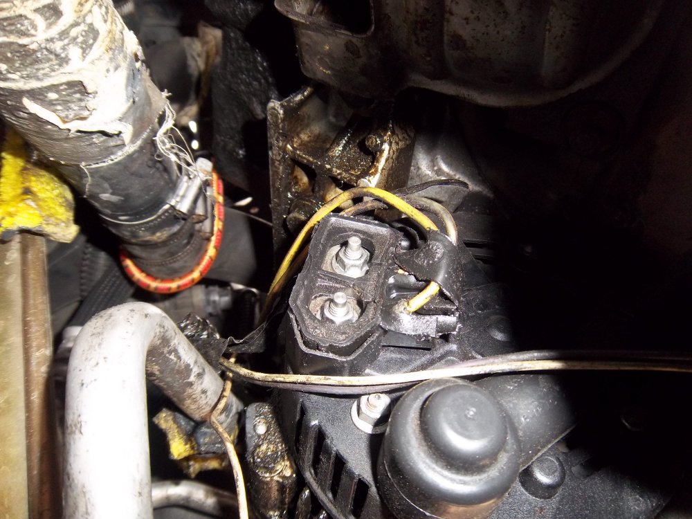 Avec le bidouillage qui a été fait au niveau des durites, impossibilité d'accéder au boulon supérieur de l'alternateur.