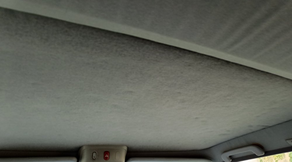 Partie centrale : Le ciel de toit se décolle, il "tombe" et la mousse est marquée de petits "ronds" et de salissure.
