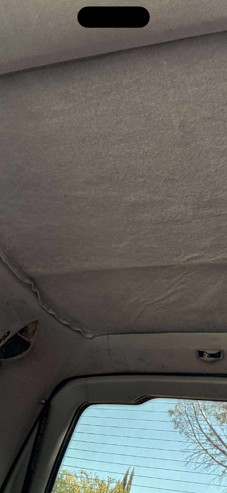 Partie arrière : Le ciel de toit est complètement décollé, laissant apparaître la mousse et la surface en dessous de cette dernière.