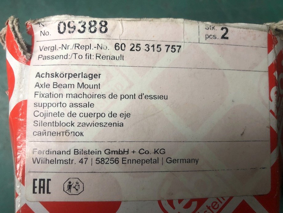 Voici la référence des silentbloc que j'ai monté sur mon camion : Febi Bilstein 09388