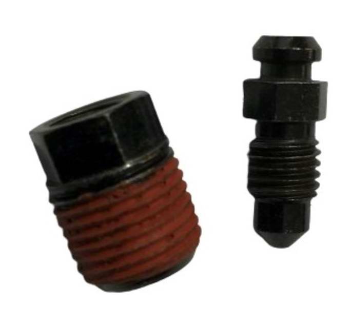Il s'agit tout simplement de deux pièces : un combiné vis/écrou/siège conique (recouvert de frein-filet) et une vis de purge :