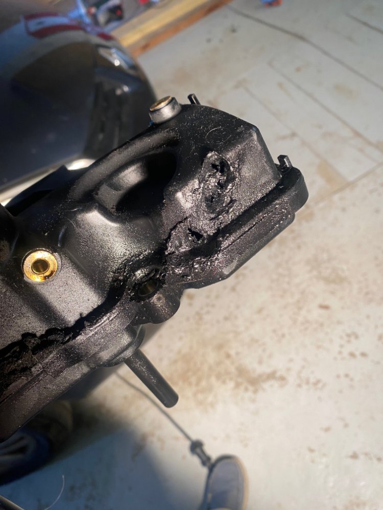 Photo de la pièce démontée et bouffée, je pense, par la projection de gaz chaud.