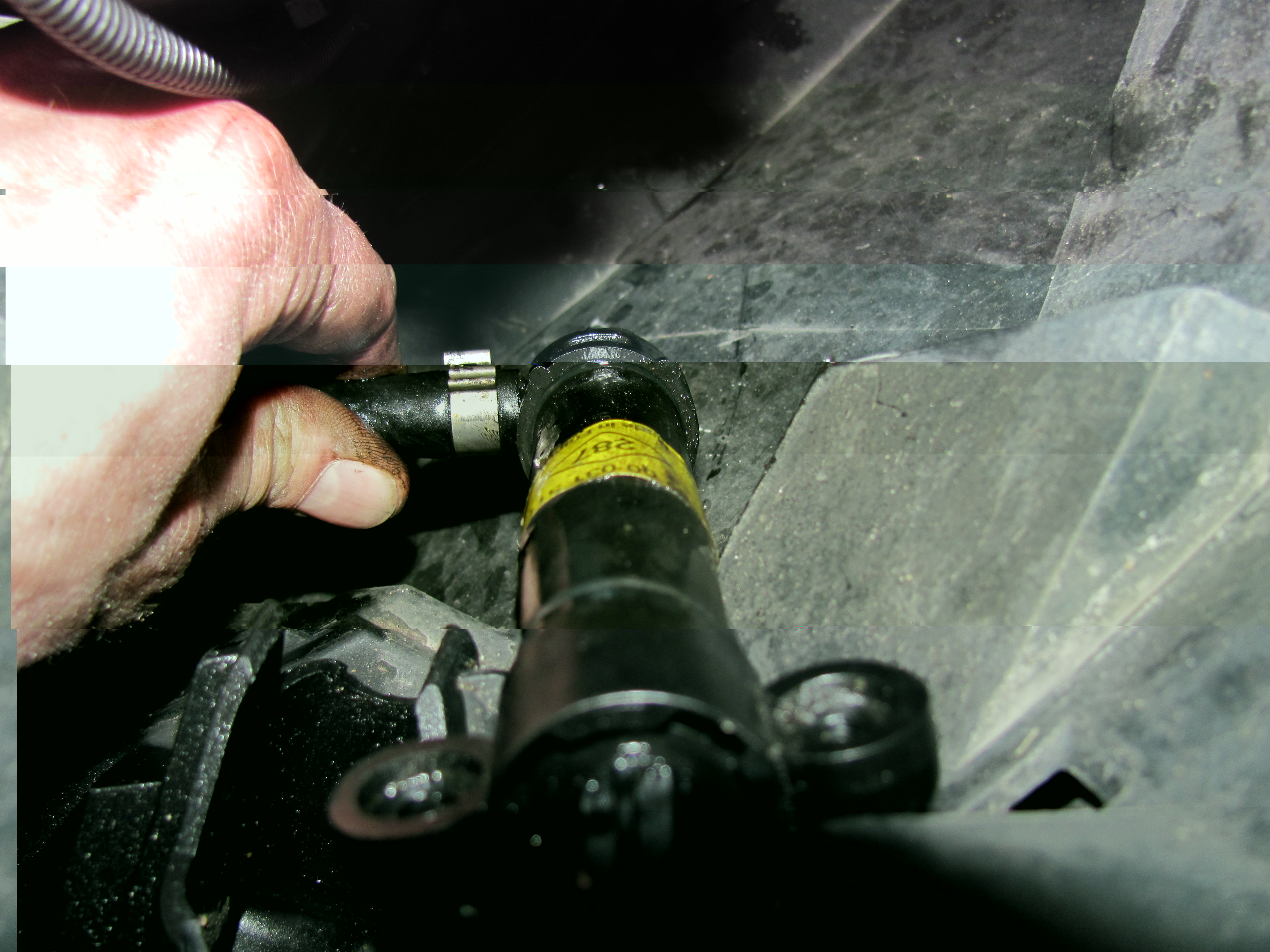 Je retire l'ancien circuit en détachant le tuyau du fond du bouclier, le tuyau est dans un chenal* exprès, il est juste emboité. déboitez tout, désacouplé le raccord du tuyau qui mène à la pompe, et tout vient vers vous. Le montage du nouveau circuit est à l'inverse du démontage. Par contre par précaution, placez les lave-phares dans leur emplacement, mais ne les fixez pas de suite. En suite, remettez le tuyau dans son chenal, raccorder le tuyau à l'autre tuyau qui mène à la pompe, reboulonnez votre protection de carter. Voila, vous avez fini pour la partie inférieur. (*vous verrez le chenal sur la deuxième photo de ce post)
