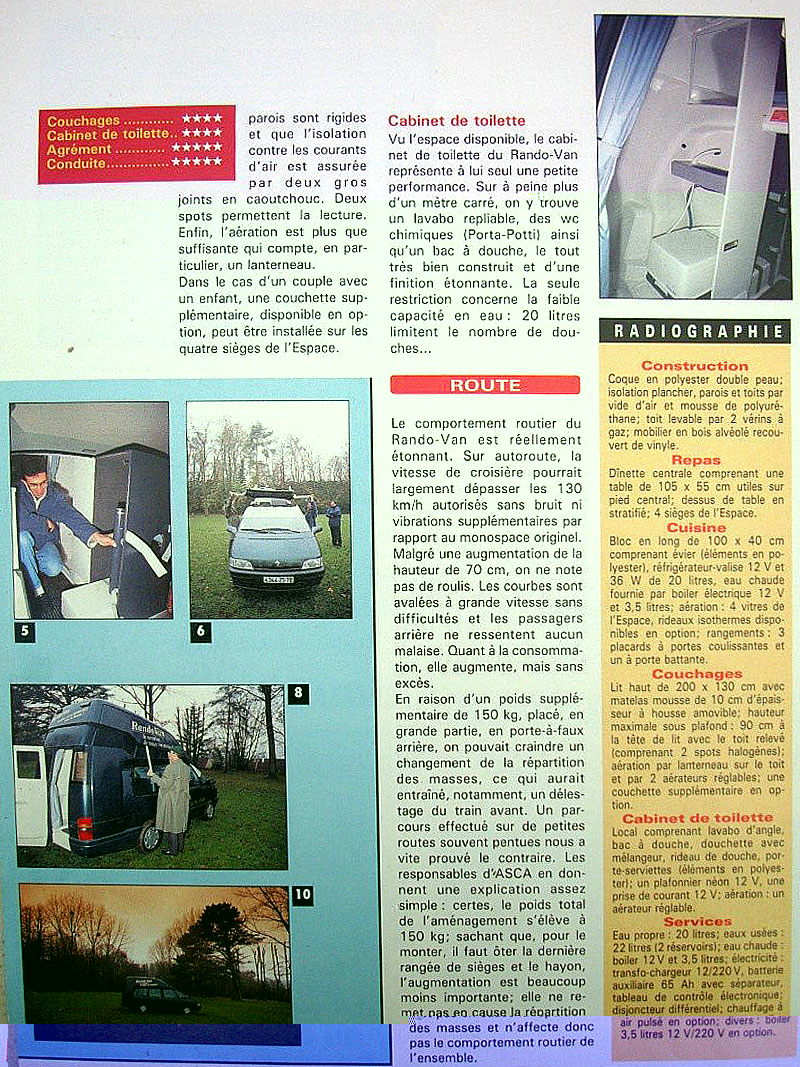 Avec des copies de coupures de presses (Revue Camping Car n°79 - Janvier 1996