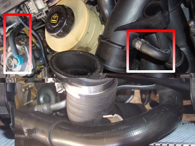 La durite de gauche , qui est raccordé à la pompe à injection ( la LDA).