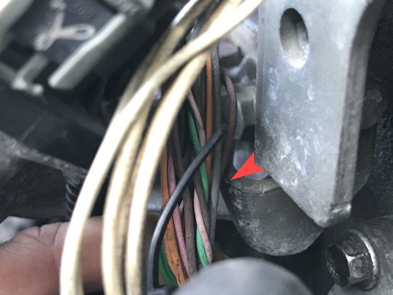 Sinon, la suite de mes péripéties électriques. Après avoir dégagé le faisceau, on voit très bien le fil coupable de tous mes maux:
