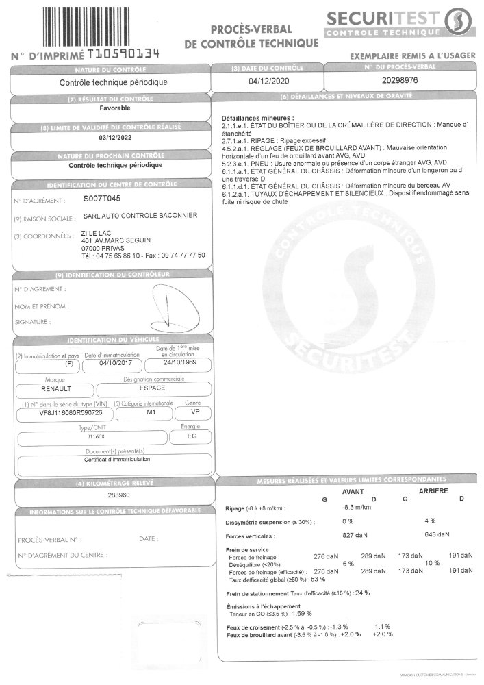 Espace III 3,0L V6 24s BVA finition Initiale de 06/2002 avec 138 600 km (caprice de cinquantenaire :P ), 142 300, 149 500, 155 000, 160 000 , 166 500, 175 000, 183 600, 189 300, 191 500, 194 100 198 000 km et CT KO,