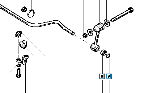 J'ai cherché à me procurer ce matin la rondelle et le clip qui permettent de maintenir en place la biellette de barre stab (pièces 8 et 9):