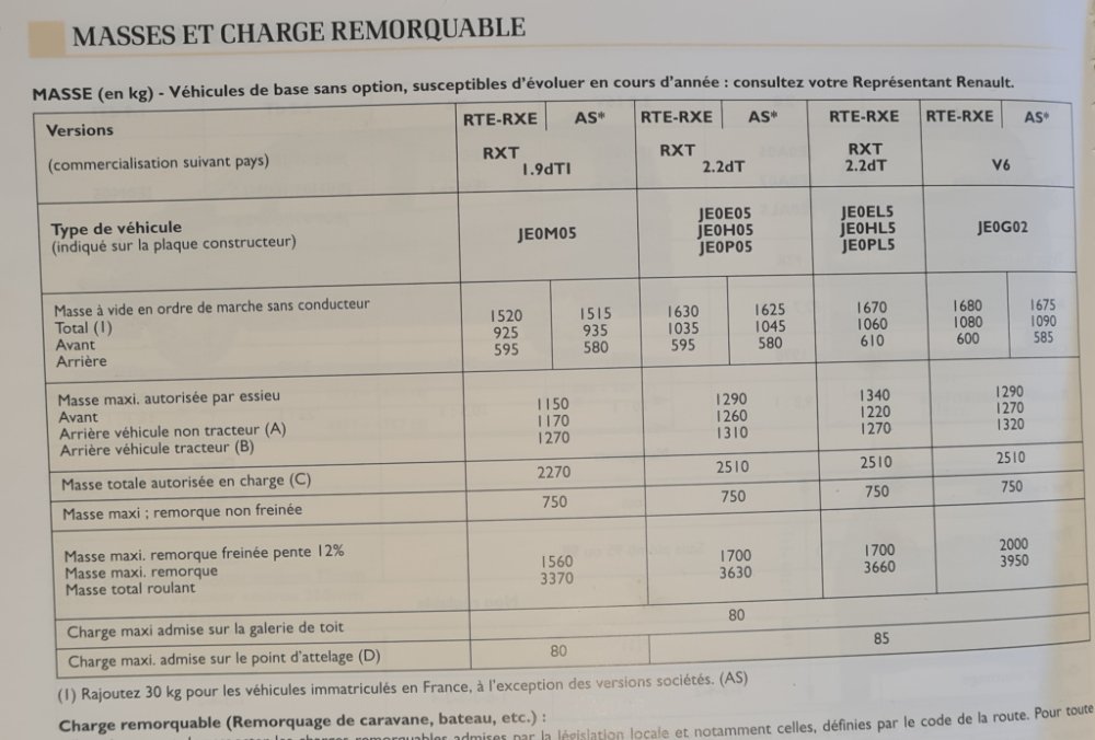:idea: .... ça ne répond pas exactement à la question, mais de mémoire ce serait 70 kgs sur les barres de toit :?: