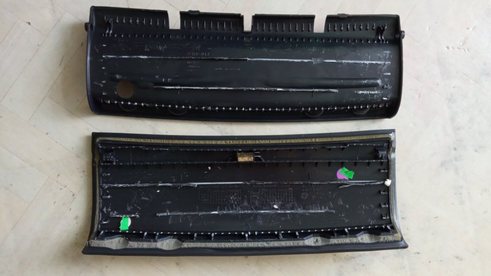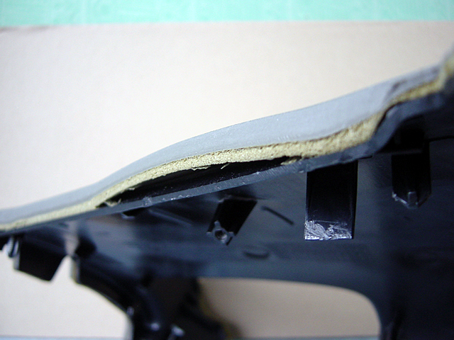 Les photos proviennent d'éléments d'occasion que j'ai acheté afin de réaliser mes essais. Une fois la planche de bord déposée, vous serez étonné de constater que le revêtement est décollé à plusieurs endroits prouvant bien une conception désastreuse de l'ensemble.