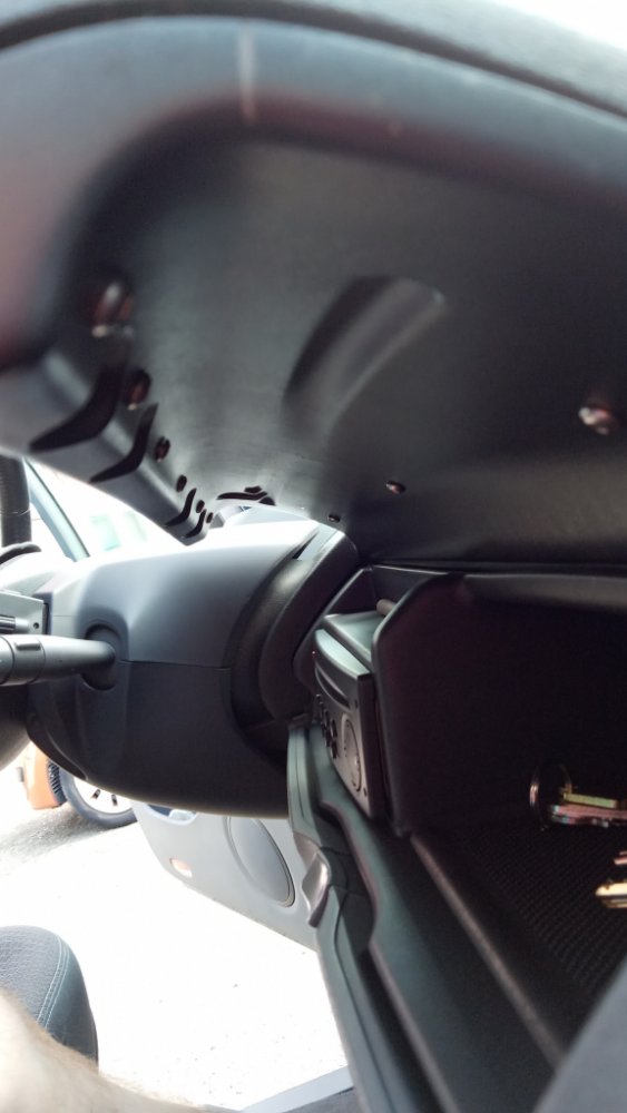 Sans trop enlever de mousse pour pas que ça se voit une vois remonté (on n’ôte que la partie cachée par la boite à gant, et qui frotte lorsqu'on l'ouvre).