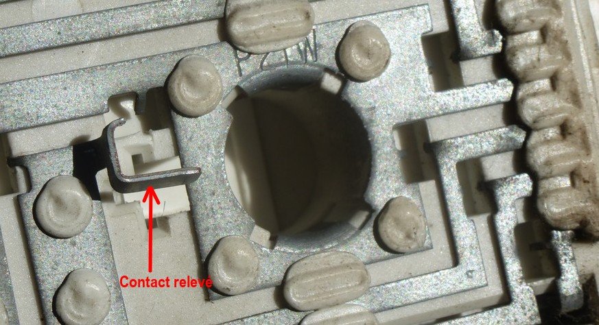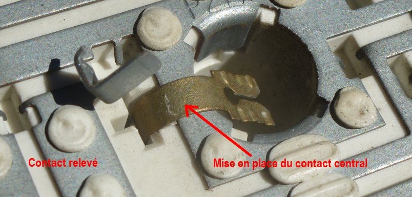 La récupération en casse d'un contact central se fait avec la pince dans l'ordre inverse.