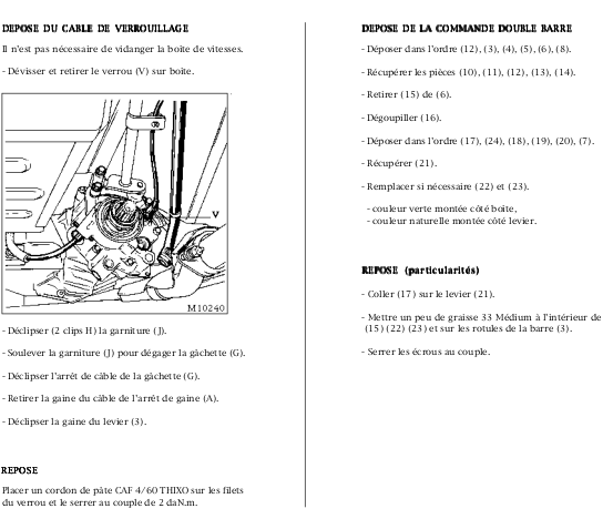 bon... j'ai trouvé le détail du montage de commande mais pas vraiment de bille là dedans, mais ça n'est pas très clair au niveau de la bague qui tire le cable. Les seules billes que je vois sont dans l'éclaté de la boite, pièces 7 et 29: edit un autre éclaté de NG3 trouvé dans le MPR pour Espace I (le précédent est pour les Espaces II):
