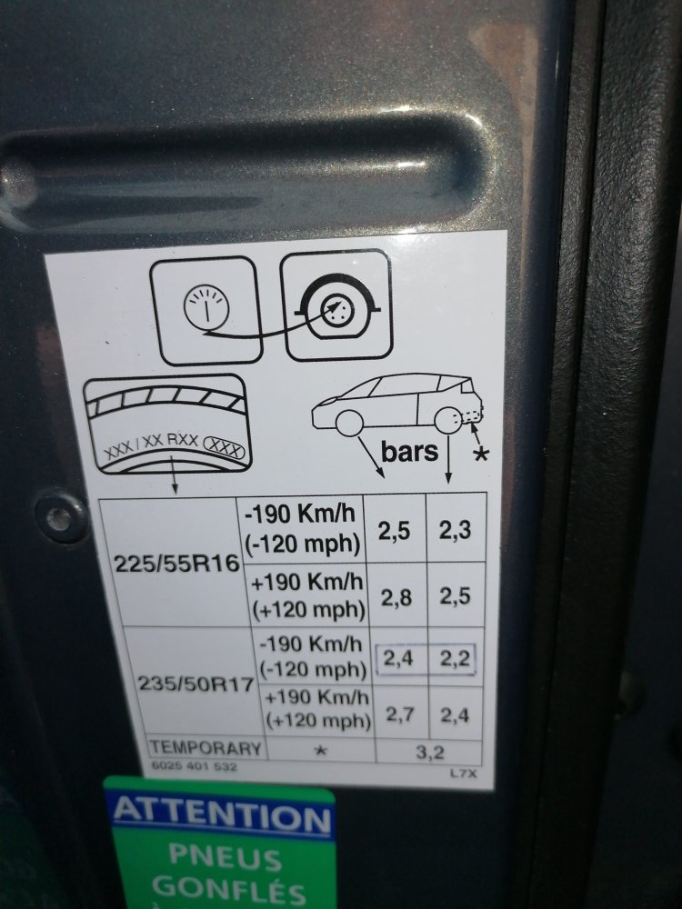 Et dans la portière, il y a d'inscrit 225/55 /16