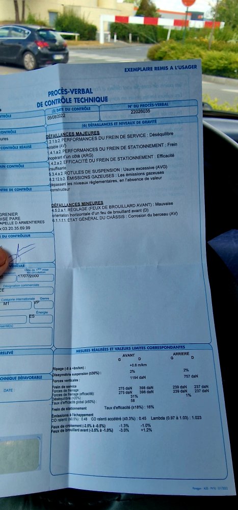 Mon Espace 2 est passé au CT en décembre 2021 avec une bonne liste de défaillances mineures que je vais essayer de corriger dans les prochains mois.