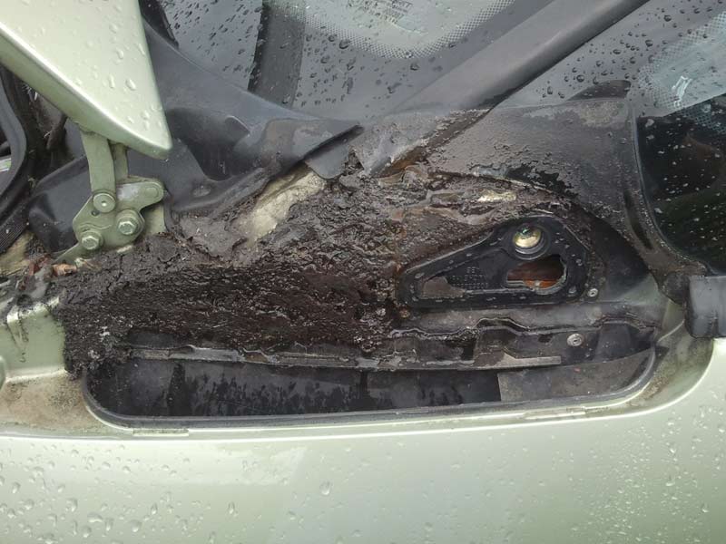 1 - Incliner complètement le miroir vers l'intérieur et vers le bas. Déboiter la glace en insérant la spatule derrière celle ci. Débrancher les connectiques de dégivrage rétroviseur. 2 - Couper les fils noirs à ras du support, puis enlever le support sonde (1 vis torx) et l l'évider au ciseau à bois pour pouvoir insérer la nouvelle sonde.