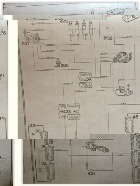 C'est l'autre fil qu'il faut suivre, trouves le connecteur 426, fil 3,(d'ailleurs, le fil 4 est le retour pour l'ampoule, c'est un moins) ou va directement sur l'excitation de l'alternateur, ou plus loin sur l'électrovanne, tout est lié, si toujours 0V, il faut trouver le connecteur 433, sinon neiman pourri., le connecteur du neiman a une faiblesse connue.