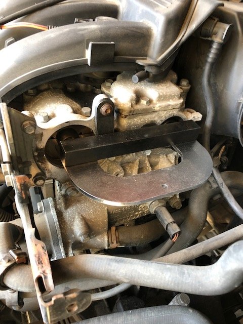Mais bon, après avoir enlevé la courroie d'accessoires et tous les caches, et mis en place des outils de calages, j'ai pû m'attaquer à la dépose de la courroie et de la pompe à eau. Ce midi, j'ai remonté la pompe à eau et la courroie avec ses nouveaux galets. Les tours moteur ne font pas apparaitre de décalage. Tout est serré au couple, sauf la poulie Damper (faudrait pas que je l'oublie
