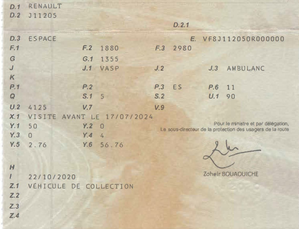 Lors de l'achat de mon Ambulance j'ai fait refaire ma carte grise ou figure VASP et AMBULANC .