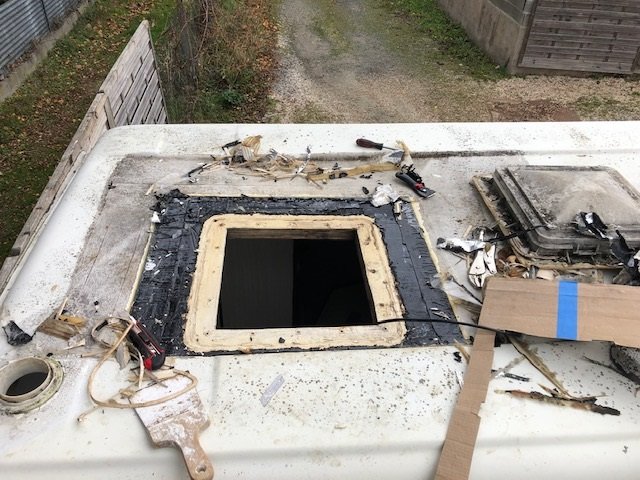 - Installation d'un deuxième lanterneau: Oui, j'en ai trouvé un autre, car celui déjà présent sera à terme dans la salle de douche. Donc je souhaite en installer un deuxième pour ventiler la partie vie quand il fait chaud. Et comme le plafond n'est pas fait, c'est maintenant ou jamais.