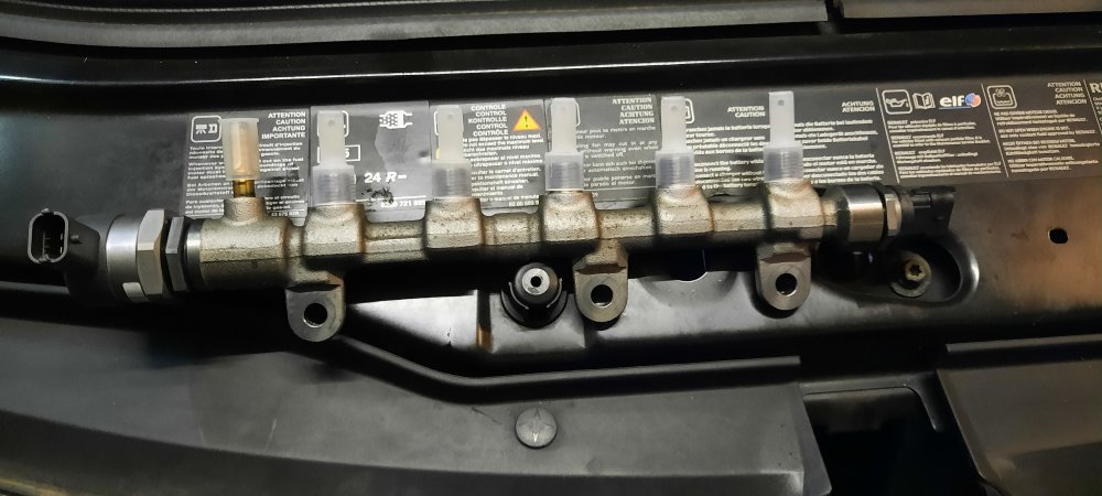 dépose du système, remplacement des injecteurs (et aussi des bougies de préchauffage et le débimètre d'air).
