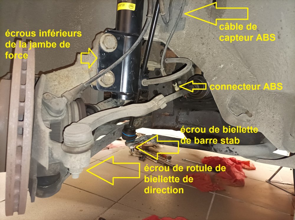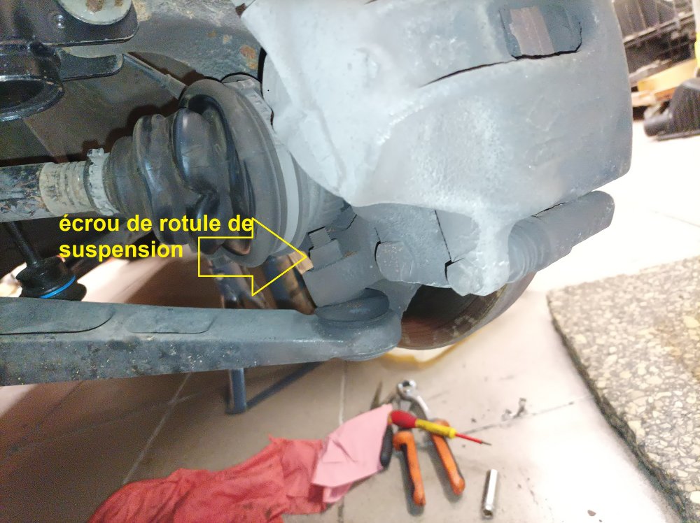 ensuite il restera la rotule de suspension qui relie le triangle au moyeu, ça c'est assez chiant à la clé plate