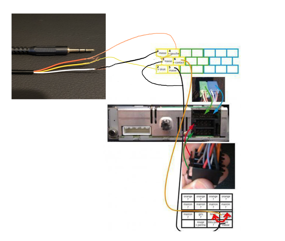 J'aimerais que quelqu'un puisse me confirmer si le schéma est bon avec la prise jack (désolé pour la qualité), j'ai envie de profiter de la prise AUX et de ne plus utiliser un transmetteur Bluetooth pour écouter ma musique.