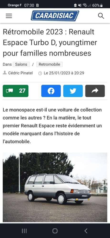Espace III 2.2dt long RXE de Janvier 1999 JE0PL G8T 716 540 000 km, ... Espace III V6-24 long Privilège option cuir de Mai 2001 de 612 000 kms au compteur JEOGL L7X en rénovation Tombé dedans avec un Espace I phase 2 2.1td de Juillet 1989 J115 J8S vendu après 450 000 km