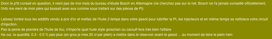 Re: Additif lubrification PI Bosch