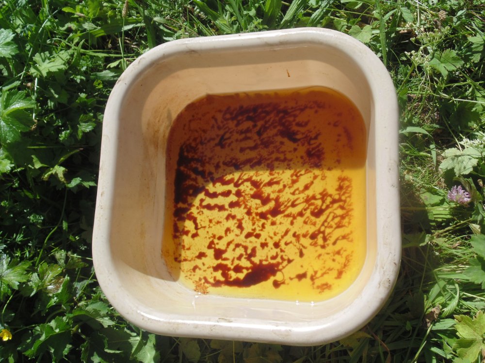Détails des réservoirs: Voila le fond du réservoir du donneur 5 ans environ de stockage gasoil assez orange .