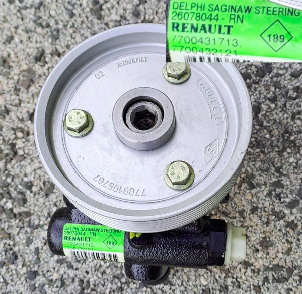 Désormais, vous savez que vous pourrez changer cette pompe. Il faut donc vous procurer cette pompe référencée chez Renault 7700431713 ou 7700432121. Si la poulie doit être changée et qu’il en faut une, la référence est 7700105707, son diamètre est de 100 mm. On la trouve chez pas mal de fournisseur, mais aussi des site comme E-Bay ou Le Bon Coin en neuf ou en occasion. Perso, j’en ai trouvé une neuve, Renault, pour 50€ en 2025 sur LBC.