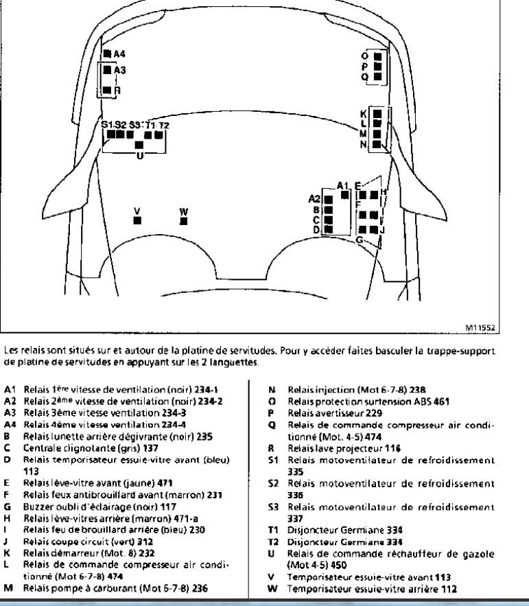c'est pas la peine de me mettre ces schémas . je les ais déja parcourus. le gros fil rouge ,12v sur la platine fusibles. déja fait il y a un an . pour info tout l'éclairage s'éteinds . là mon probléme c'est que tout marche ,en plein phares (les 2). mais en mettant en code ,il n'y a que le coté conducteur,qui fonctionne. si c'était le fil 12 v ,il n'y aurai rien. il faut que je trouve ,si il ya un relais pour le code droit,ou fusible. sinon ,j 'irais voir ça avec un électricien auto. c'est tout les schémas c'est bien ,mais je les avait déja