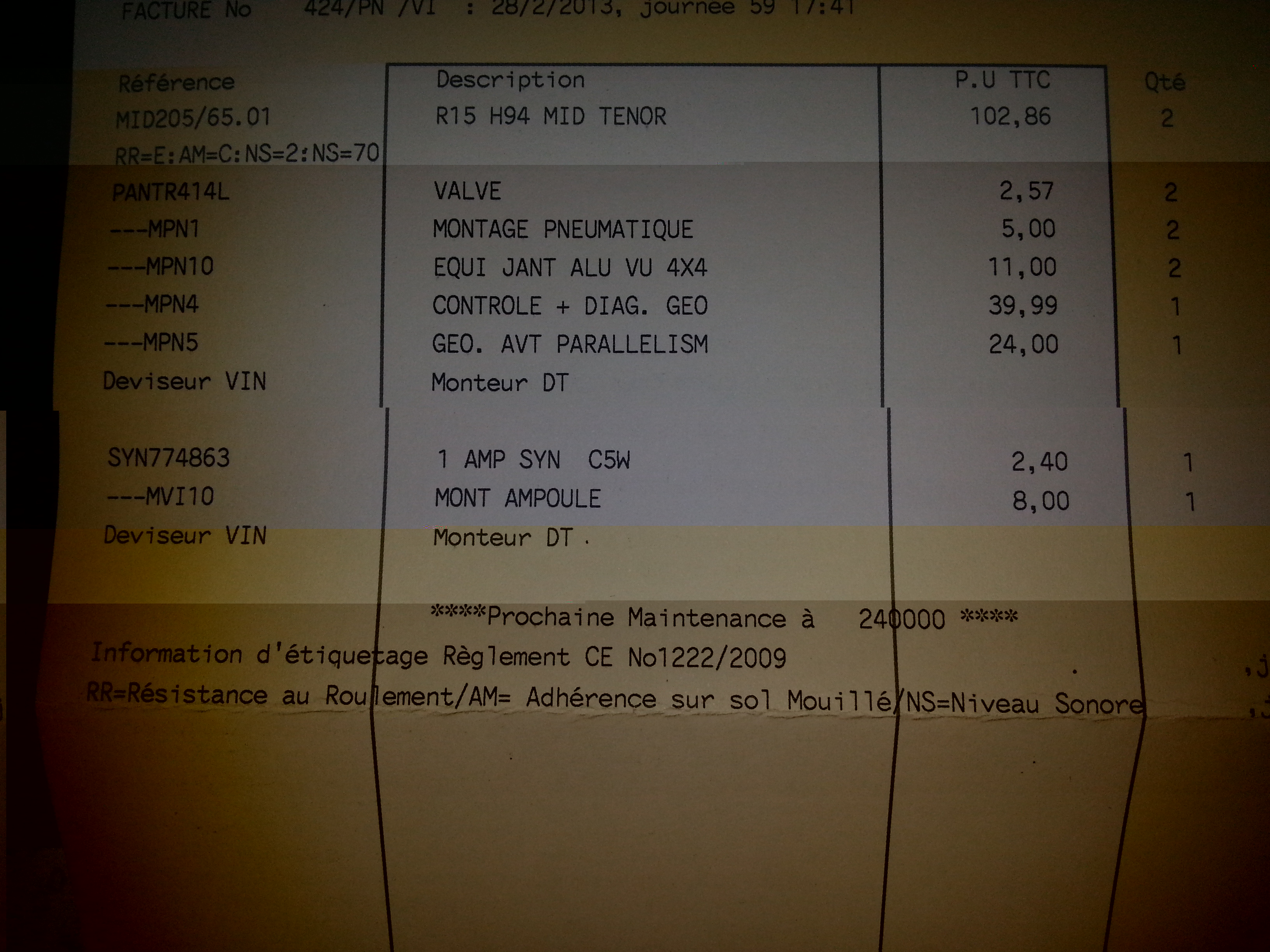 en plus je me suis pris le chou avec le chef de centre qui m'annonce qu'ils ont changer une ampoule d'eclairage de plaque pour la modique somme de : 2,40 euros d'ampoule et 8,00 euros de montage !!!!!
