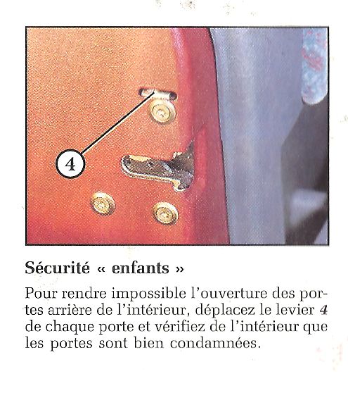 Je ne peux pas ouvrir mes portes arrières de l'intérieur. J'ai vérifié le petit loquet ainsi que l'intérieur des portières ( d'ailleur je me demande si il ne manque pas une tringle dans les deux portière arrière ). je peux les ouvrir de l'extérieur. Je tiens à préciser que la fermeture centralisée ne fonctionne plus sur l'arrière, ni à l'avant coté conducteur mais juste côté passager. Si mes portes arrières ne s'ouvrent pas ma titine ne passe pas le contrôle...Auriez-vous une idée ?? merci