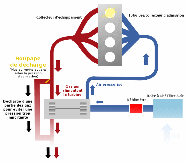 Depuis que je roule avec mon TGV, j'ai remarque que le Mano du turbo en ouvrant les gaz a fond, finissait legerement dans la zone rouge. Je n'ai pas voulu insister. Sous le capot, j'ai remarque de l'huile projete sur la grosse durite artant de la BAA au turbo. Ca venait de la petite durite d'huile juste en face, celle qui lubrifie le turbo. Je l'ai donc change, et maintenant, l'aiguille du mano d'arrete a un peu plus que le milieu