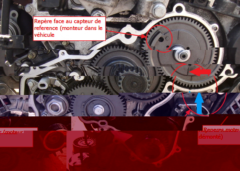 Comment retrouver soncalage vilebrequin, arbres à cames et repere sur pigon pompe à eau.