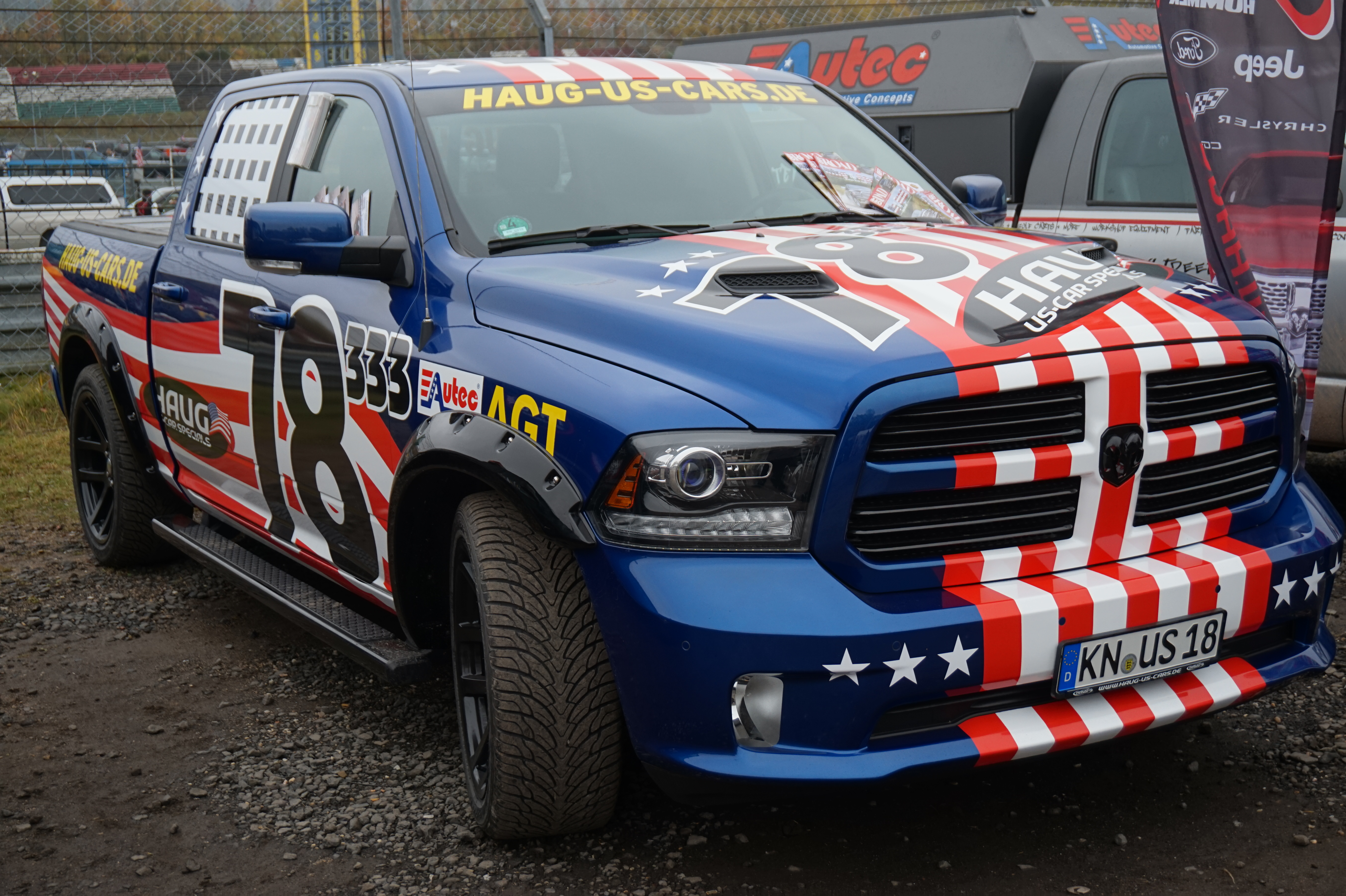 Des RAM 3500, encore plus imposants (entre 6.5 et 7m de long), avec roues simples ou jumelée, moteur V8 ou V6 diesel (non, pas des DCI, mais des CUMMING, de 350 à 600CV !)