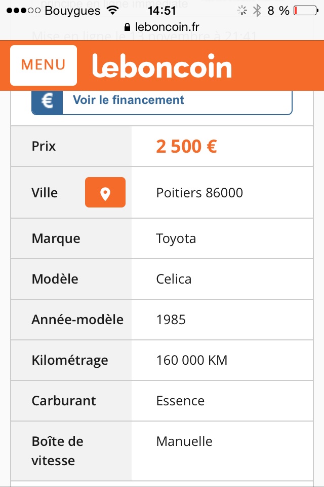 Je la porte au garagiste cet aprèm, en espérant qu'elle n'ait pas de vice caché ! :mrgreen: