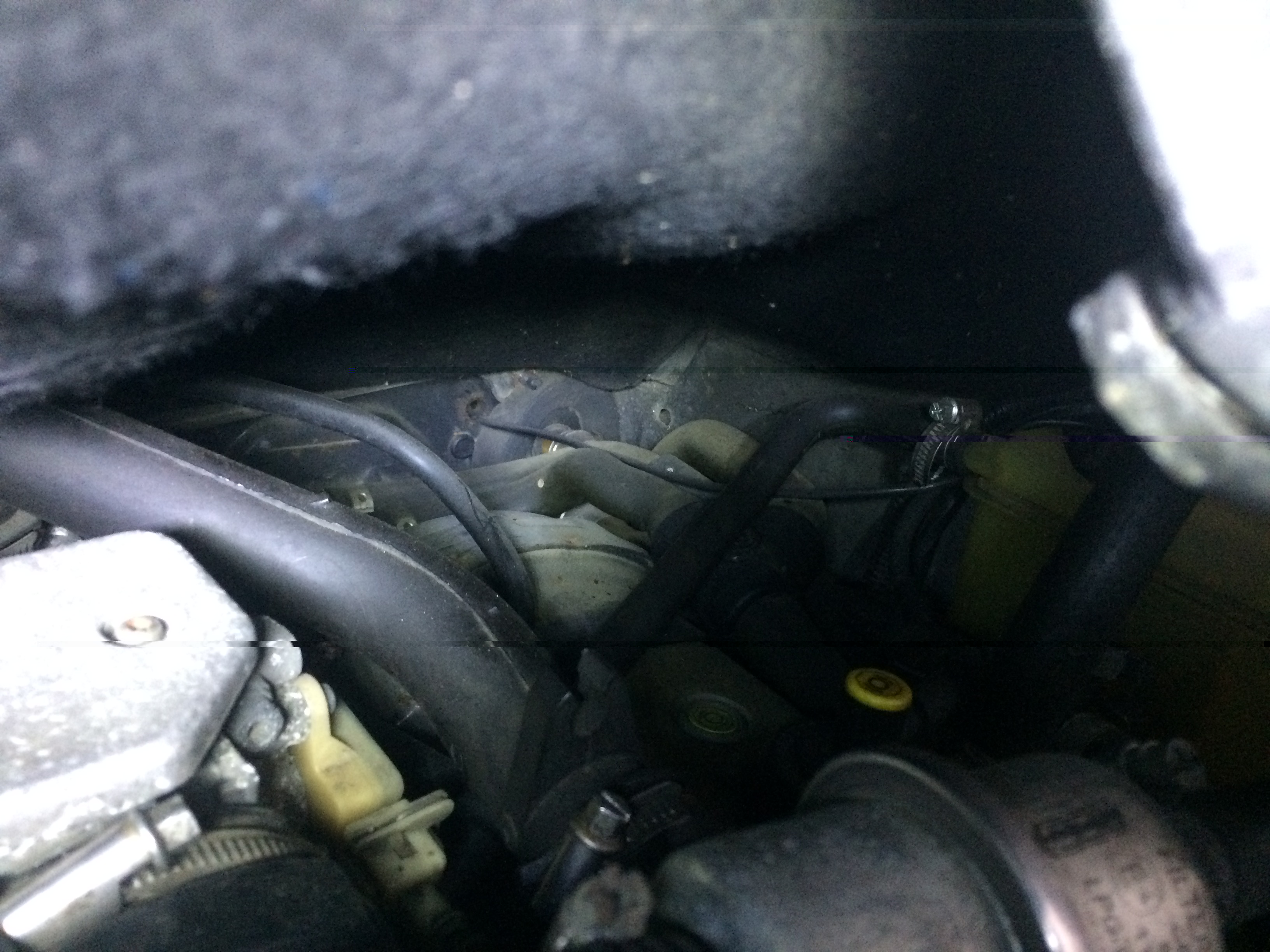 Cela étant fait, on commence le remontage ... et Oh misère la tête de la vis de purge de la durit du boitier thermostat me reste dans la main...