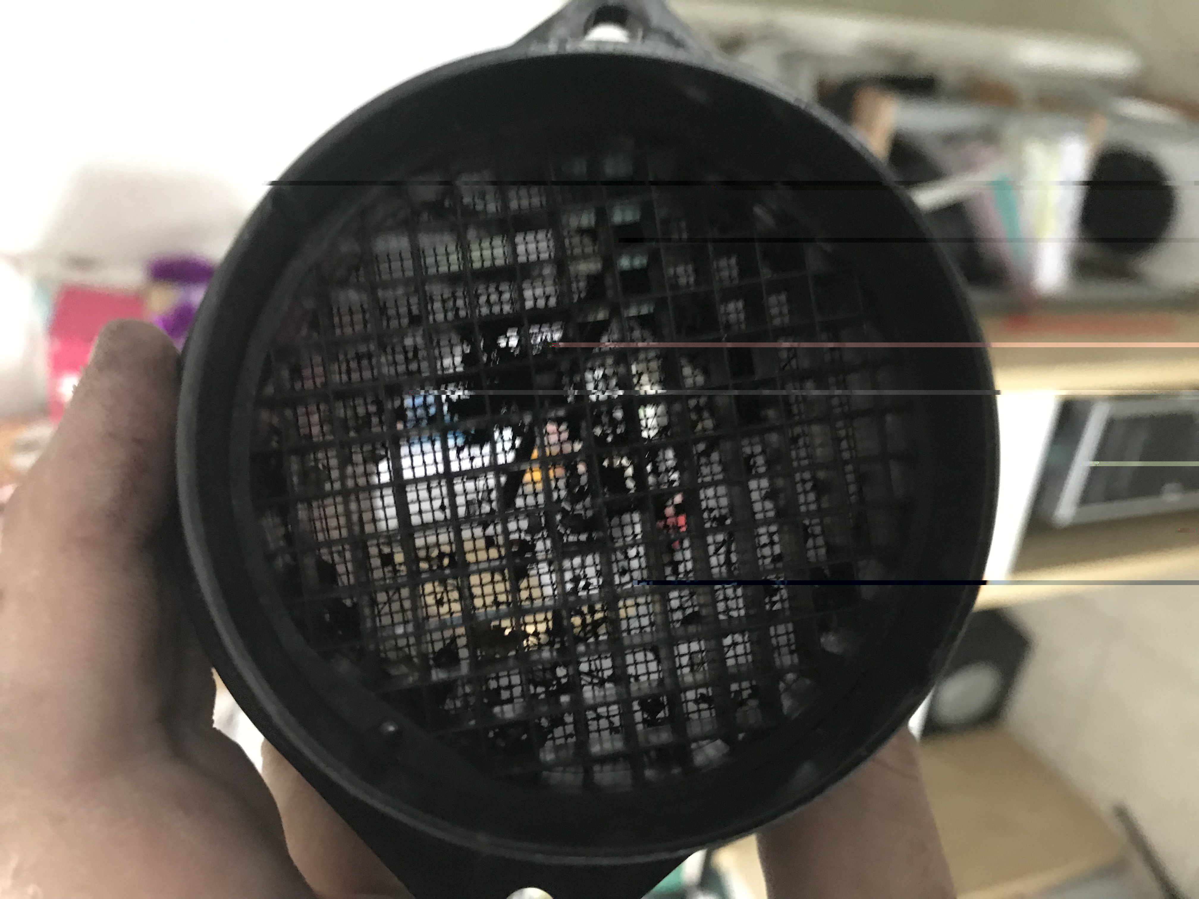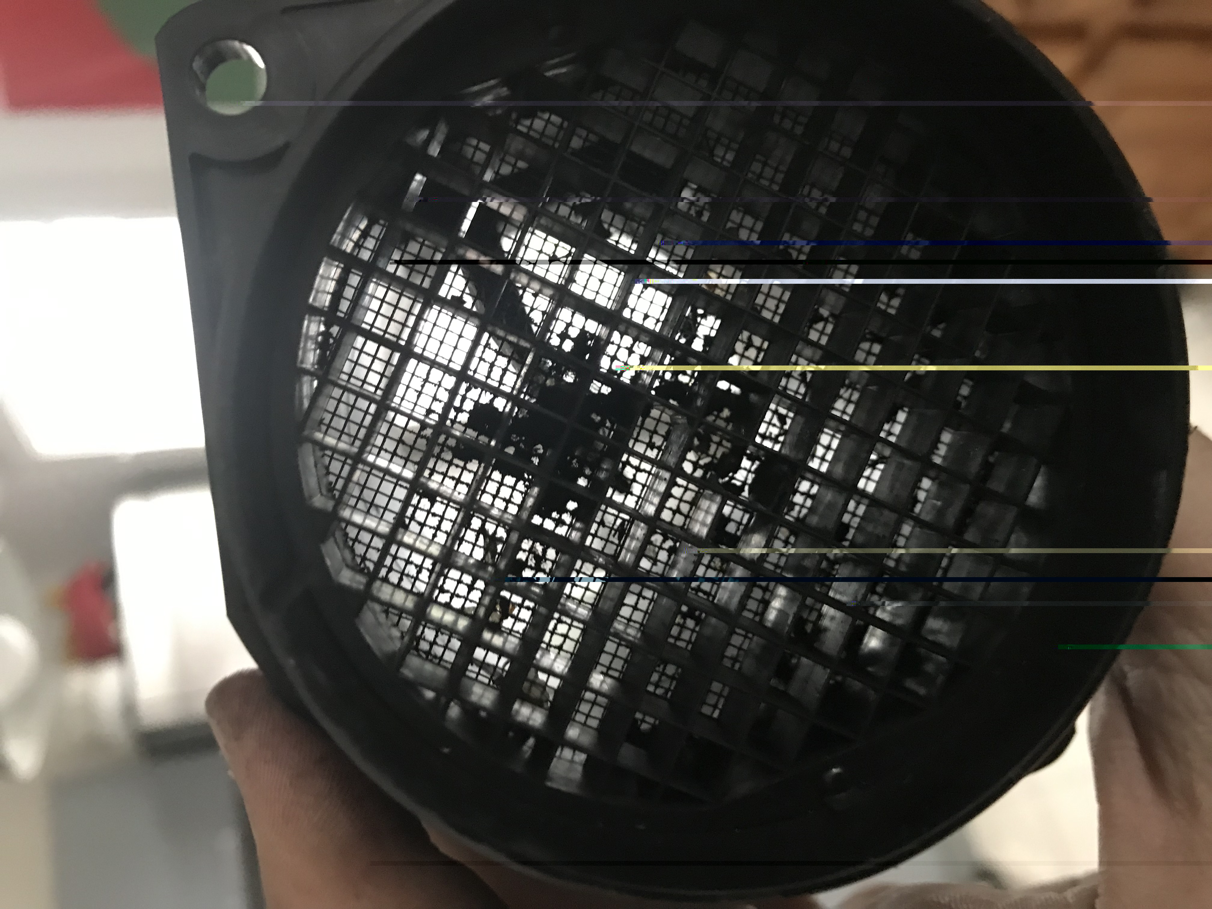 A noter que hier j’ai démonté toute la boîte à air ainsi j’ai pu osculter le débitmètre. Débitmètre qui présentait des particules végétales coincées entre les deux grilles. Particules que je n’ai pas réussi à retirer.