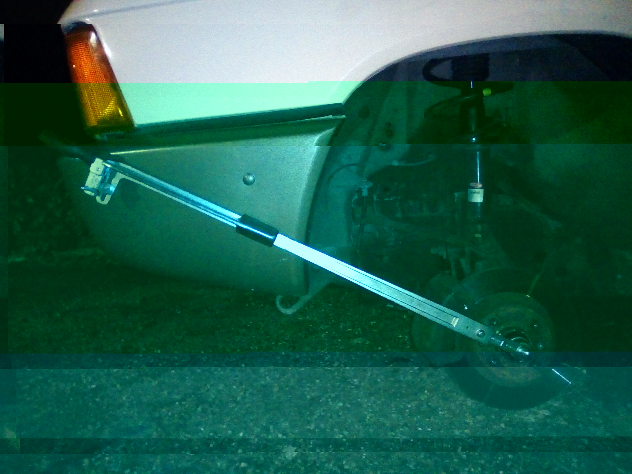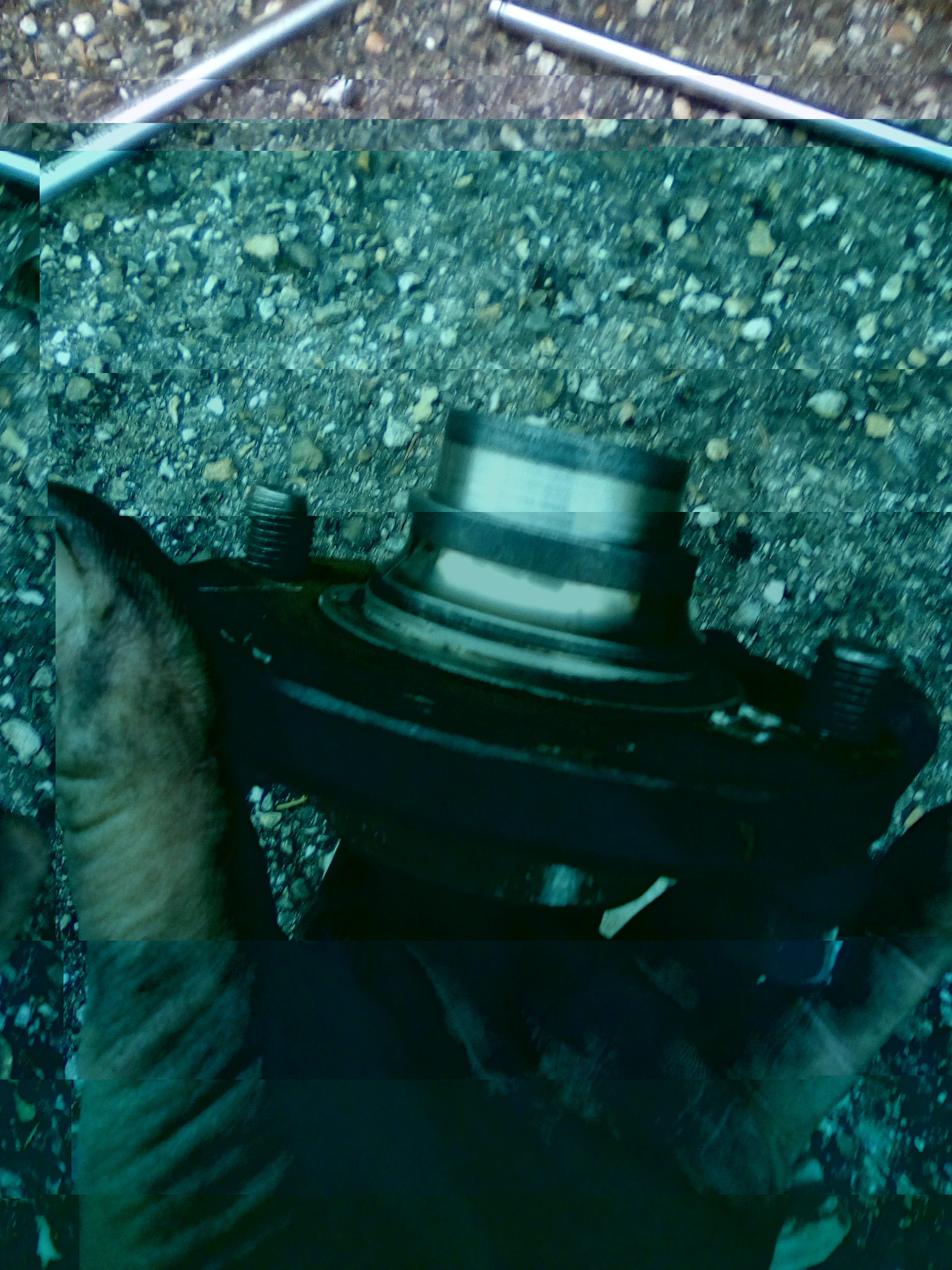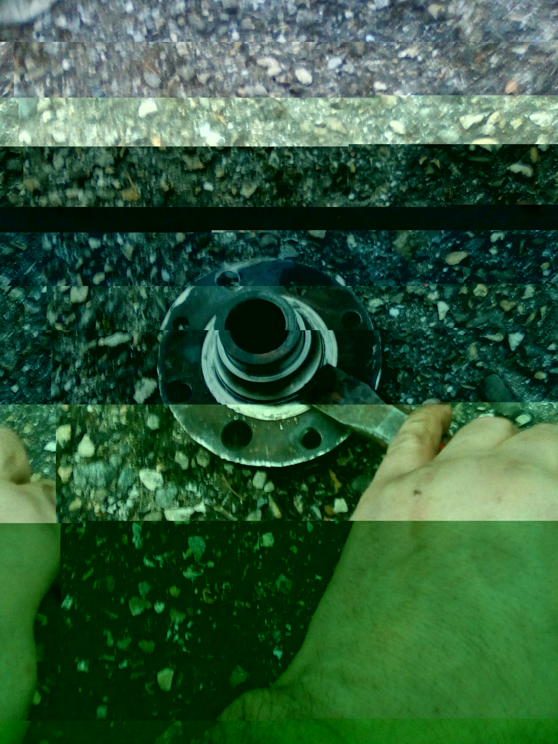 Je ne l' ai pas (il faudra que je me le fabrique un de ces jours), donc je passe une vitesse et je tourne avec une clé à douille, sur le manche de laquelle j' ai enfilé un bout de tube acier récupéré d' 1,5 m, comme rallonge.