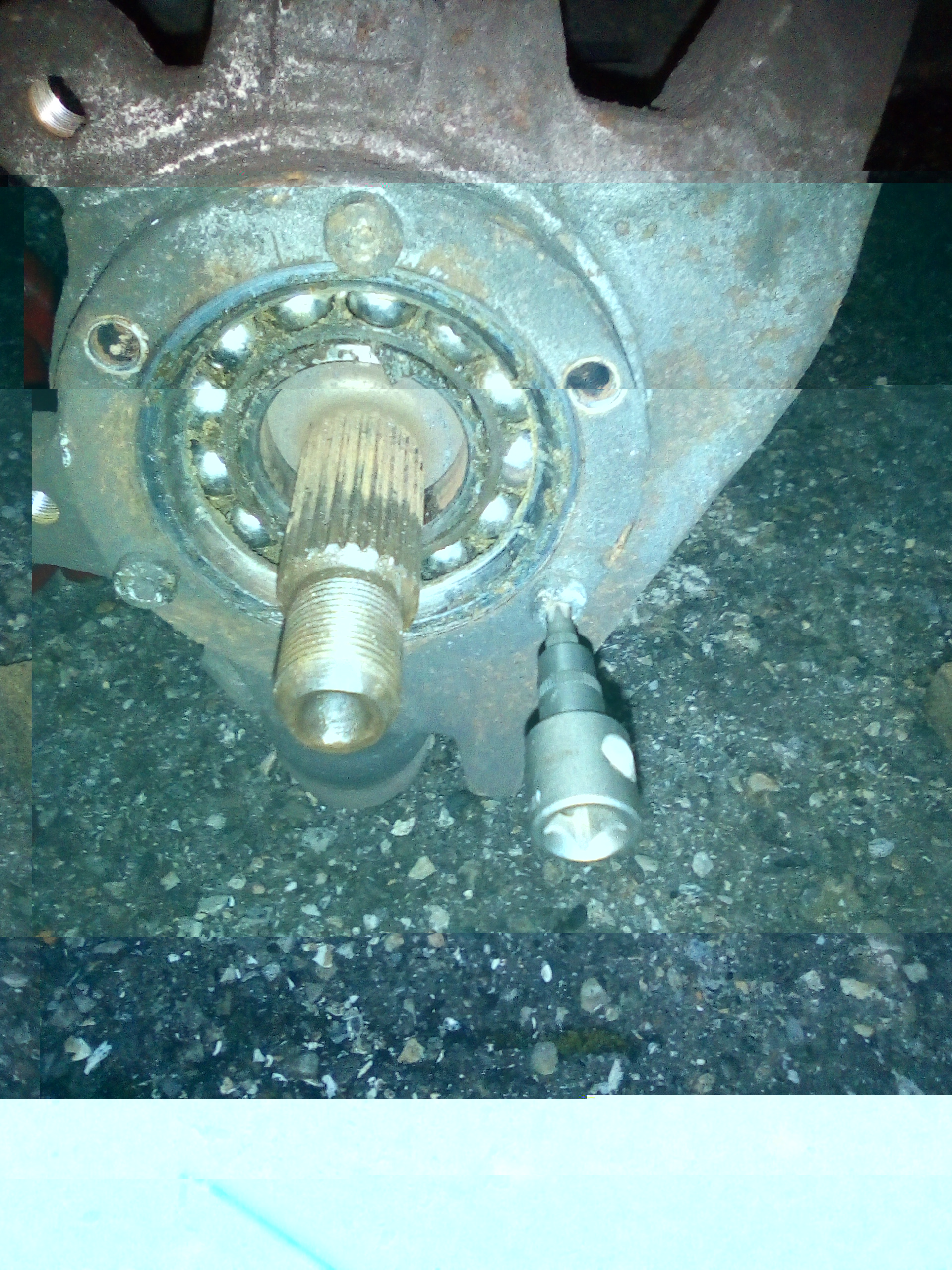 enfiler le moyeu avec sa nouvelle bague sur le cardan, puis la rondelle et commencer à visser l' écrou neuf.