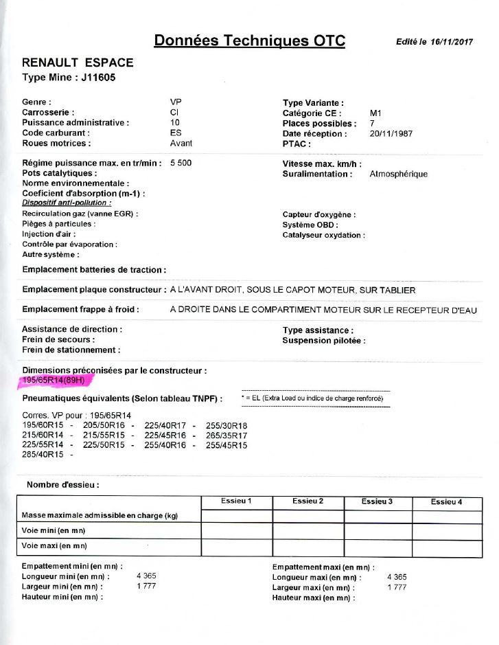 Surpris pour les pneus, car j'avais repris les indications sur les anciens pour le changement.