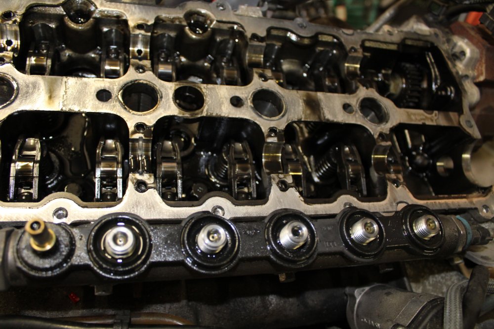 ) ; Je commence par contrôler le calage de la distri avant de démonter et surprise mon kit ne rentre pas : 2 solutions : soit mon kit chinois est tout pourri (ça m'étonne, ayant déjà acheté ce genre de matos pour les autres moteurs renault dont le 2.2l...) ou bien mon problème de puissance vient de là!!! Bref, je démonte cata, tuyauterie turbo et autres tuyaux egr pour libérer la culasse. S'en suit le repérage puis la dépose des injecteurs puis du couvre culasse.