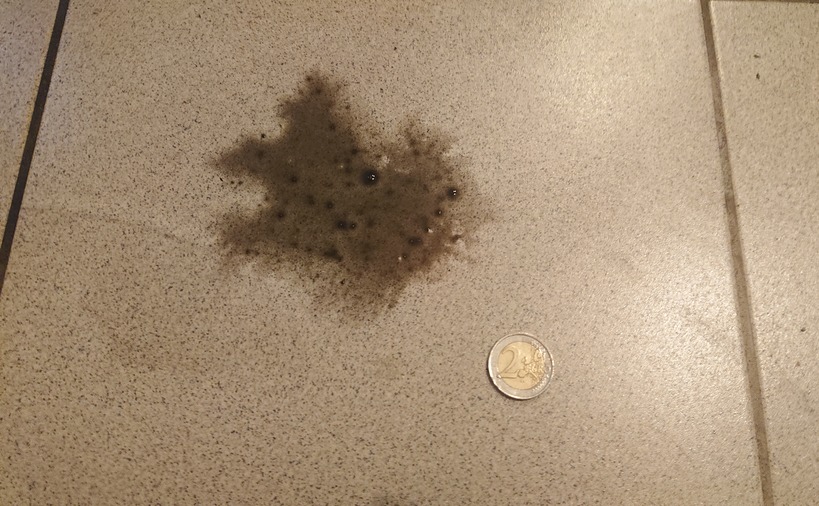 Une auréole de 3 cm ça fait quoi 3 gouttes qui s'étalent sur un ciment. Ouais je n'appelle pas ça une fuite surtout après 3 jours.