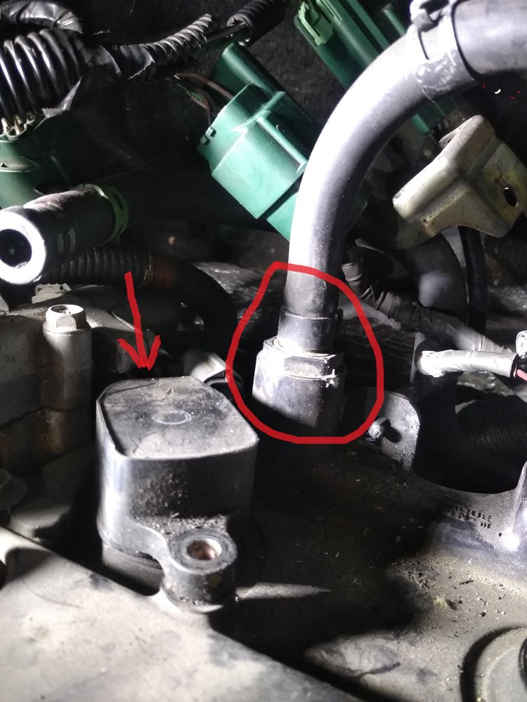 Sous le débimètre, il y a une toute petite quantité de LR qui coule quand on retire les 2 durites mais rien de méchant (à peine un verre). Il y a aussi un petit tuyau de dépression à débrancher côté débitmètre.