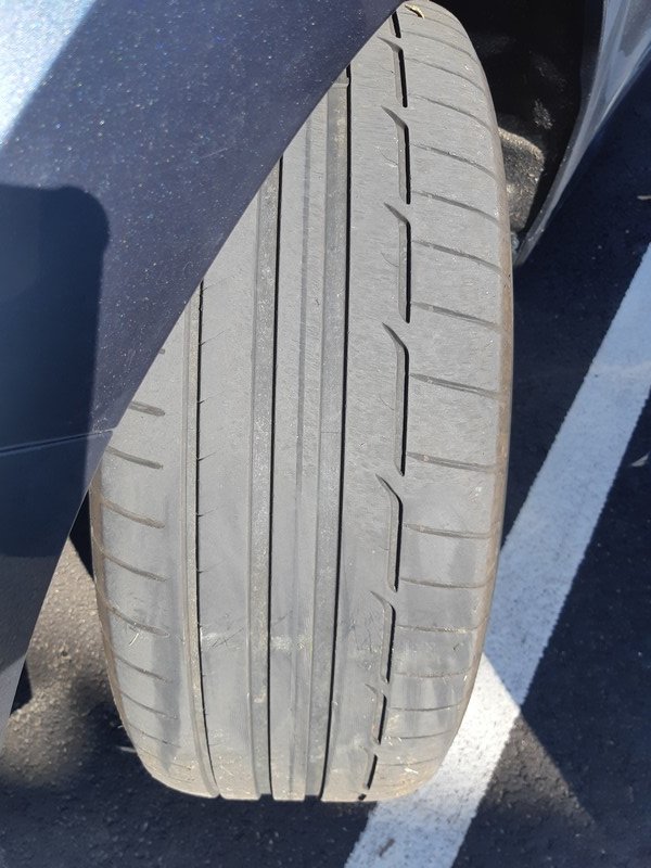 Voici des photos prises ce soir (mon Espace a 19.000 km au compteur), roue complète, bandes de roulement pneu avant gauche et droit. Je ne suis pas au témoin. Puis j'ai mis une pièce de 2€, c'est bon, mais limite.