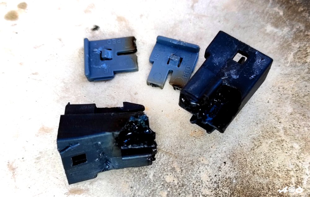 Voila les coupables... c'est le faisceau qui a mangé. J'ai remis ça en place avec une bricole, ça semble fonctionner, mais le must serait de mettre la main sur des connecteurs en état et refaire un truc propre !